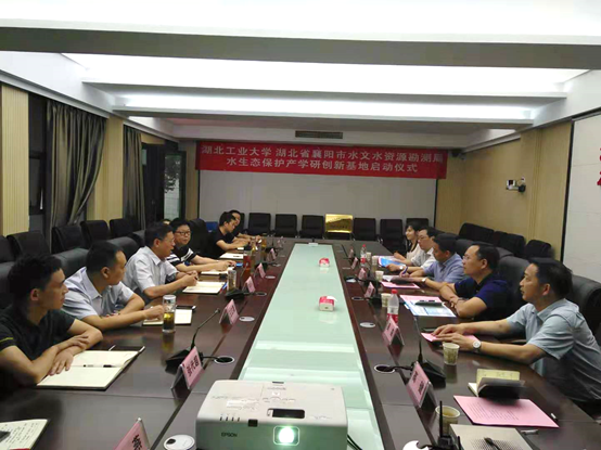 襄阳市水文局党委书记李华书主持启动仪式,他对我校老师们的到来表示热烈欢迎,对创新基地的建立表示祝贺,他衷心感谢湖工业大学近年对襄阳水文局提供的大力技术支持。局长高涛介绍了襄阳水文局的发展历程和业务范围,并着重讲述了技术需求,希望后期双方在水生态保护方面开展技术合作,实现创新发展,共同服务襄阳市的水生态保护工作。