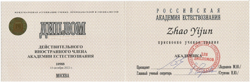 据悉,俄罗斯自然科学院是联合国认可的俄罗斯规模最大的科学院,于1990年由俄罗斯多位知名学者及科研机构发起成立,成员均为自然科学和人文科学领域取得重大成就的科学家和专家。该科学院设立24个学部,有18名诺贝尔奖获得者、270多名俄罗斯科学院院士。外籍院士包括了全球48个国家的杰出科学家,中国有多位两院院士也曾当选为俄罗斯自然科学院外籍院士。