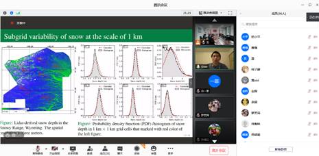 11月23日,应土木建筑与环境学院邀请,美国海洋与大气管理局(National Oceanic and Atmospheric Administration (NOAA))何思为研究员通过线上腾讯会议开展题目为“Subgrid variability of snow and its simulation in hydrological models”的学术报告。报告会由土建学院资环系系主任刘瑛主持,部分教师代表和研究生集中在资环一203会议室集中学习,资环系教师、研究生和本科生通过腾讯会议参与线上学习。